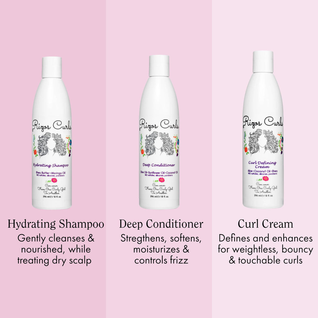 Rizos Curls Trio Bundle, Hydrating Shampoo & Deep Conditioner & Curl Cream Bundle, Gently Cleanse and Hydrate Curly Hair, Style