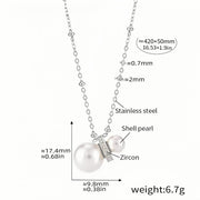 Chic, timeless, and versatile this silver-tone necklace features lustrous shell pearls paired with a sparkling zircon ring accent, making it an elegant addition to any jewelry collection. Crafted from premium stainless steel, it resists tarnish and maintains its brilliance for years. Lightweight and gentle on the skin, it's perfect for everyday elegance or as a thoughtful gift for someone special.