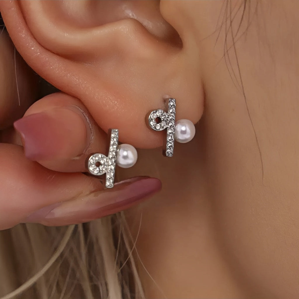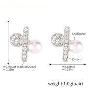 Bring effortless elegance to your jewelry collection with these Silver Shell Pearl & Zircon Stud Earrings. Crafted with precision from stainless steel, these petite earrings feature a geometric layout adorned with sparkling zircon stones and a luminous shell pearl. Lightweight and timeless, they're the perfect go-to for daily wear or subtle evening glam.