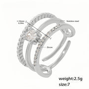 Add a touch of sophistication to your jewelry collection with this stunning silver-tone open ring. Designed with three elegant bandsone textured, one smooth, and one adorned with sparkling zircon crystalsthis ring delivers both style and comfort. Its durable stainless steel build ensures resistance to tarnish, while the bright zircon stones catch the light beautifully. With a size 7 fit and adjustable open design, it's ideal for daily wear or special occasions. Whether youre treating yourself or looking for the perfect gift, this ring is a must-have piece.