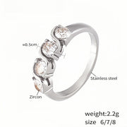 Add a sparkle of sophistication to your look with this silver-toned stainless steel ring adorned with dazzling zircon stones. The stylish swirl-prong setting creates a graceful flow, enhancing each stone's brilliance while ensuring a secure fit. Lightweight yet durable, this ring is perfect for daily wear, special occasions, or as a thoughtful gift. The minimalist silver finish complements any outfit, adding elegance with every movement.