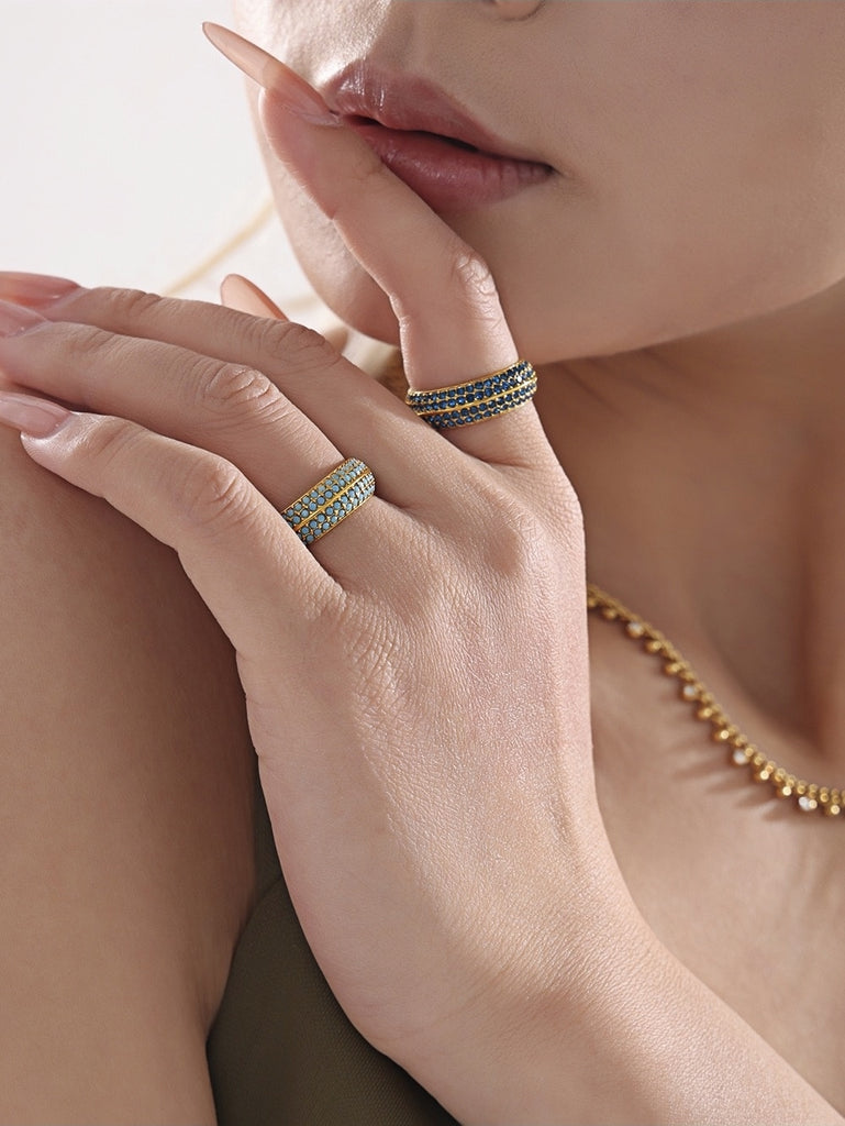 Uworld Stainless Steel Eternity Band with Blue Zircon - Stackable Beaded Ring for Women - Sizes 6