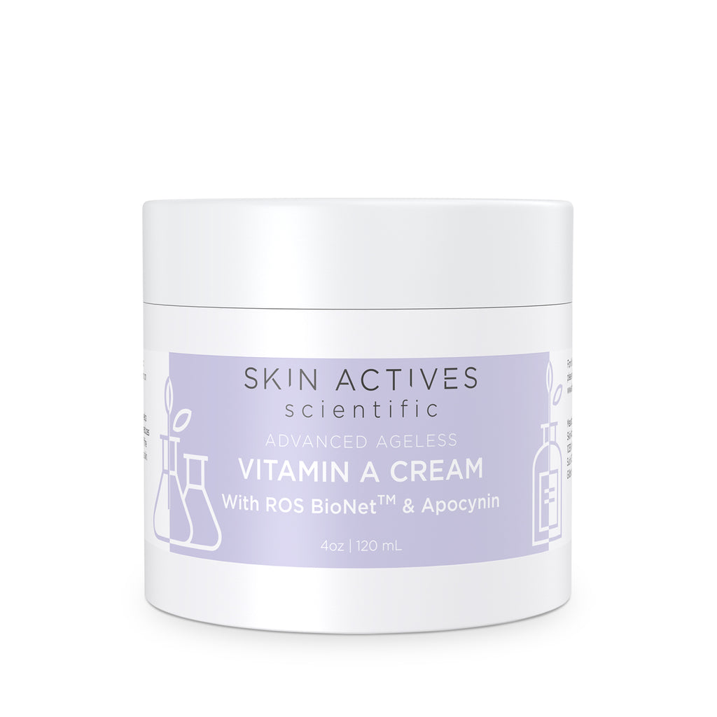 Our Advanced Ageless Vitamin A Cream Is The Same Great Formula But With Added Apocynin And Ros Bionet. Apocynin Decreases Oxidative Stress And Promotes The Synthesis Of Collagen Which Will Promote Skin Health And Vitality.&Nbsp; &Nbsp;Ros Bionet Is An Exclusive Combination Of Antioxidant Proteins Created By Skin Actives Scientific. This Vitamin A Cream Is A Gentle And Lightweight Exfoliating Formula With A Blend Of Natural Oils To Clear Pores, Renew Skin And Reduce The Appearance Of Fine Lines And Wrinkles. Our Vitamin A Cream Uses Retinyl Acetate Which Is Gentler And More Stable Version Of Vitamin A. Retinols At Higher Concentrations Can Sometimes Damage Skin And Thin The Skin Barrier. So Our Vitamin A Cream Is Just Enough To Promote Cell Turnover Rate Without Causing Sensitivity Issues In Most People. Skin Actives Vitamin A Cream Contains Our Exclusive Sea Kelp Bioferment With Its Full Array Of Nutrients Plus Polysaccharides, Which Will Moisturize Your Skin And Protect It From Pollution And Bacteria. It Also Contains Hydrolyzed Collagen And Hyaluronic Acid To Moisturize Your Skin And A Blend Of Natural Oils Such As Jojoba, Sweet Almond, Avocado And Pomegranate Oils To Produce A Soft, Supple Feel To Your Skin. This Product Is Perfect For Anyone Who Wants To Gently Exfoliate Skin On A Regular Basis To Reduce Breakouts From Acne Or Reduce Those Fine Lines.&Nbsp; Vitamin A Cream Is Suitable For A Skin Types. Always Remember To Wear A Sunscreen When Using Any Vitamin A Derivative.&Nbsp;