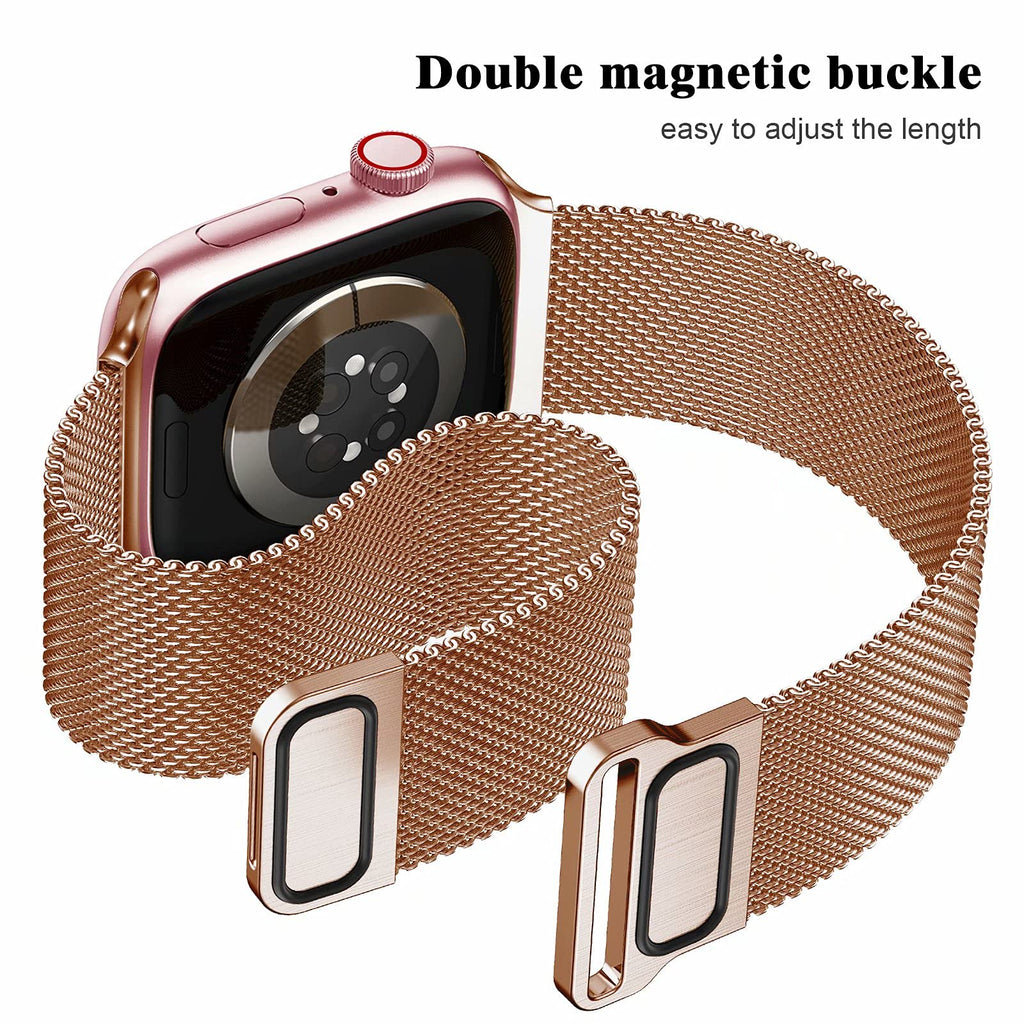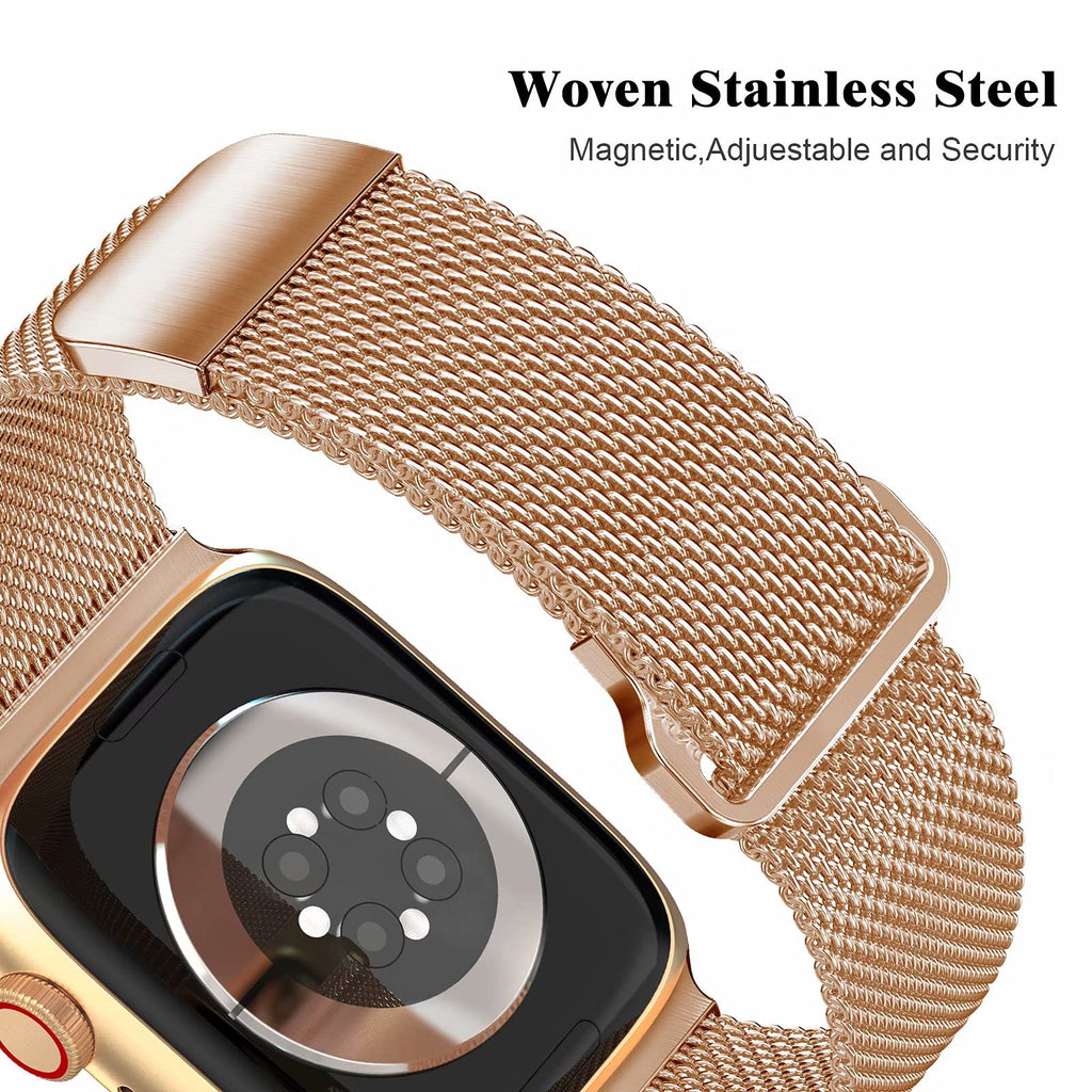 - Geoumy Metal Replacement Band Compatible with Apple Watch Series 8/7/6/5/4/3/2/1, SE. - Adjustable magnet clasp and security buckle design of the wristband,just easily stick and lock your iwatch, the smooth stainless steel mesh wraps fluidly around your wrist,ensuring a perfect fit. - Waterproof and durable Stainless Steel, comfortable and cool.Also it is solid, durable, flexible, breathable, non-allergic, corrosion and will never get rusty. -Stylish design and color personalize your compatible with iwatch,match your clothes and outfit, change you mood everyday. fits for woman, man, boys and girls, Amazing Gift for Family and Friends. -The drop and scratch-resistant apple watch band with case are designed to add an extra layer of security to your expensive watch. The premium TPU case provides 360 degrees of total security for your iwatch. It is not afraid of bumps, scratches, daily wear, accidental drops and bumps even in harsh environments.