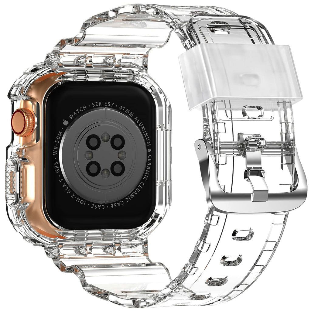 XYF Compatible for Crystal Clear Apple Watch Bands, 45mm 44mm 42mm Bumper Case for Men Women Jelly Sport Case Band for iWatch Ul