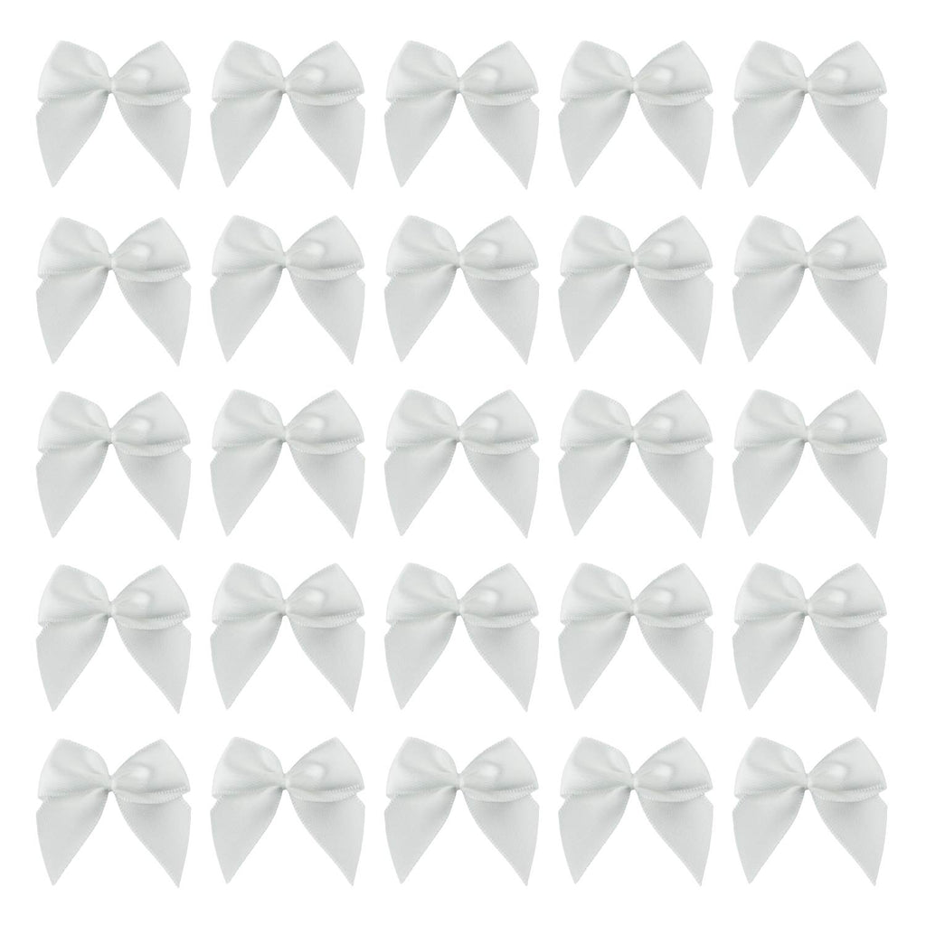 7Rainbows 50pcs 5/8 Boutique Mini White Satin Ribbon Bows Flowers Appliques DIY Craft for Sewing Scrapbooking Wedding and Gift
