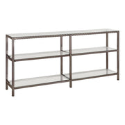 Stylize A Modern Space With A Fashionable And Functional Piece. This Gorgeous Bookcase Brings Together The Unmistakable Beauty Of Glass And Metal. With A Black Nickel Finish Steel Frame And Clear Tempered Glass Shelving, It Adds An Elegant Simplicity. Display Books, Decor, And Photographs On Two Tiers Of Shelves And A Rectangular Surface. This Exquisite Bookcase Adds A Gentle, Soft, And Inspiring Look To A Contemporary Room.