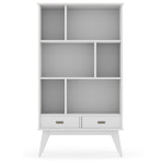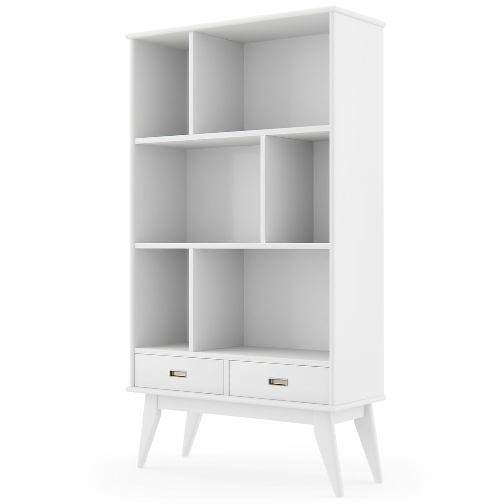 Display Your Favorite Books And Keepsakes In The Draper Mid Century Wide Bookcase With Storage. This Piece Is Crafted From Solid Hardwood And Combines A Mid-Century Modern Design With Function. The Draper Mid Century Wide Bookcase With Storage Features Six Shelves And Two Drawers Providing The Ultimate Solution For All Your Storage Needs. This Bookcase Delivers A Clean Lined, Contemporary Feel To Your Living Room, Family Room Or Home Office.