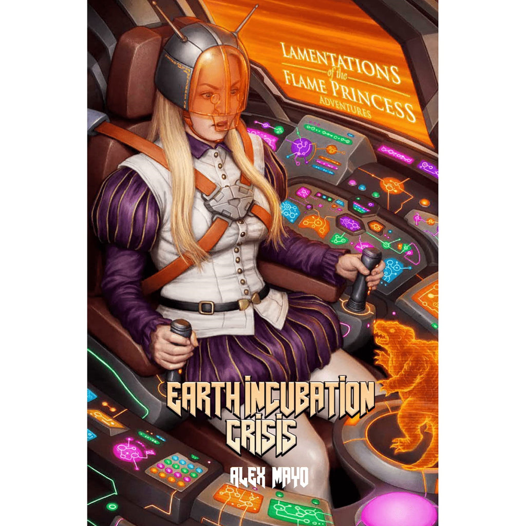 Lamentations Of The Flame Princess: Earth Incubation Crisis The Hills Are Alive With The Sound Of Murder! Missing Kids! Rumors Of Witchcraft! Strange Things Skulking About The Mountains And Marshes Under The Cover Of Darkness! Sounds Pretty Standard Right? Maybe, But This Is Lamentations Of The Flame Princess Where This Kind Of Stuff Is Merely A Cover For The Truly Weird Goings-On. Within The Covers Of This Book Is A Mystery Of Titanic Proportions That Begins In The Cretaceous Period And Might End In The Destruction Of Earth Itself! Written By Alex Mayo, Earth Incubation Crisis Is An Adventure For Lamentations Of The Flame Princess Weird Fantasy Roleplaying And Other Classic Fantasy Games. 112 Page Full Hardcover. Adventure For Use With Lamentations Of The Flame Princess And Other Traditional Role-Playing Games. Earth Incubation Crisis, By Alex Mayo. 112 Page 2-Color A5-Sized Hardcover. Writing And Interior Art By Alex Mayo. Cover Art By Yannick Bouchard. Layout And Graphic Design By Alex Mayo. Editing By Tom Cadorette.