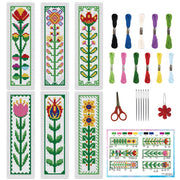 INFUNLY 6pcs DIY Flower Cross Stitch Bookmark Kits for Beginners 2.4x7.9 Colourful Flowers Stamped Embroidery Bookmark Kits with Instruction Needlepoint Bookmark Kits with Plant Pattern for Gift