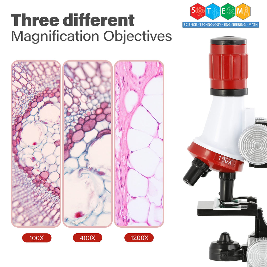 IQCrew 1200X Kids Microscope Toy Set with Slides Preparation Kit + Microscope Book