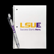 The LSU Eunice Bengals Gift Set includes a spiral notebook measuring 8" x 10.5" and a comfort feel metal pen.