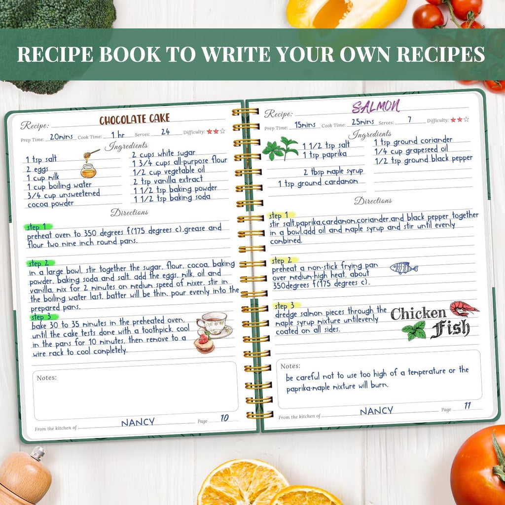 LuBudingJoy Blank Recipe Book to Write in Your Own Recipes. Sprial Hardcover Blank Cookbook, Recipe Journal Hold 150 Recipes(Dar