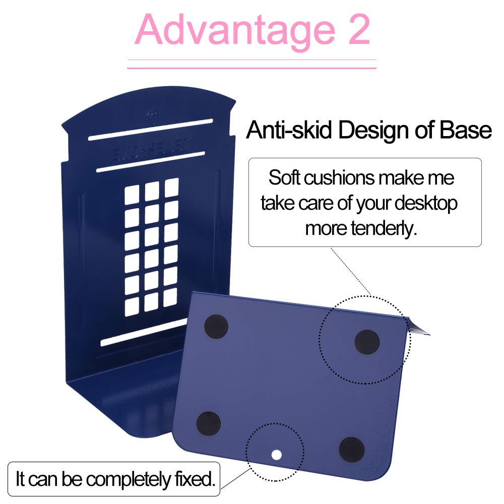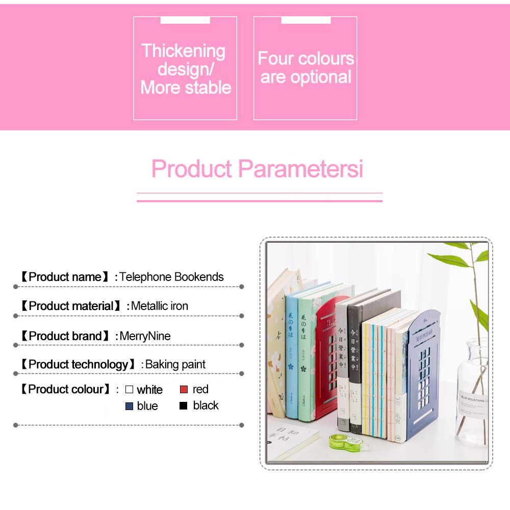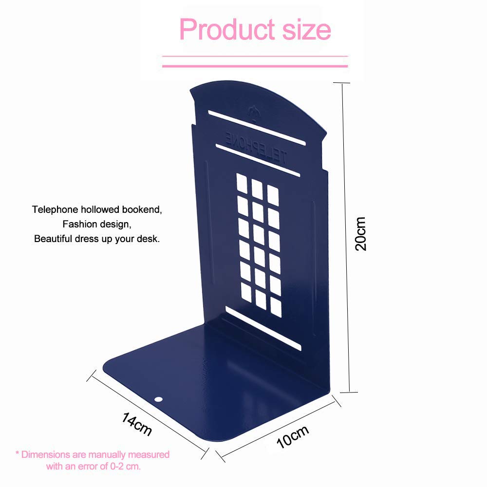 MerryNine 2 Pack Book Ends, Metal Bookends for Shelves, Telephone Booth Decorative Bookends, Non Skid Heavy Bookends, Book, Magazine or CD Organizers for Home and Office (Blue-2pcs)