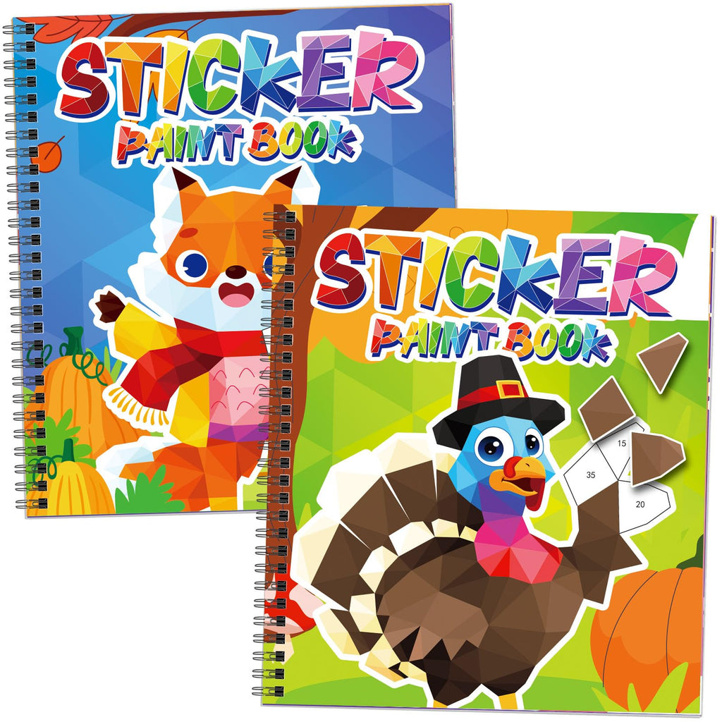 Transform craft time into a delightful Thanksgiving adventure with these engaging sticker paint books designed for children ages 4-8. This 2-pack set features charming autumn-themed designs including turkeys, maple leaves, and other festive fall motifs. Each pack allows kids to create up to 20 unique pictures, making it perfect for fall-themed parties or holiday activities. The sticker sheets come separately, making organization easy and allowing children to work at their own pace. These paint-by-sticker books help develop fine motor skills, pattern recognition, and creative thinking while providing hours of entertainment. The set makes an excellent gift choice for young artists and is ideal for both individual and group activities during the holiday season. Keep little hands busy and minds engaged with this entertaining combination of stickers and art that brings the magic of fall to life.