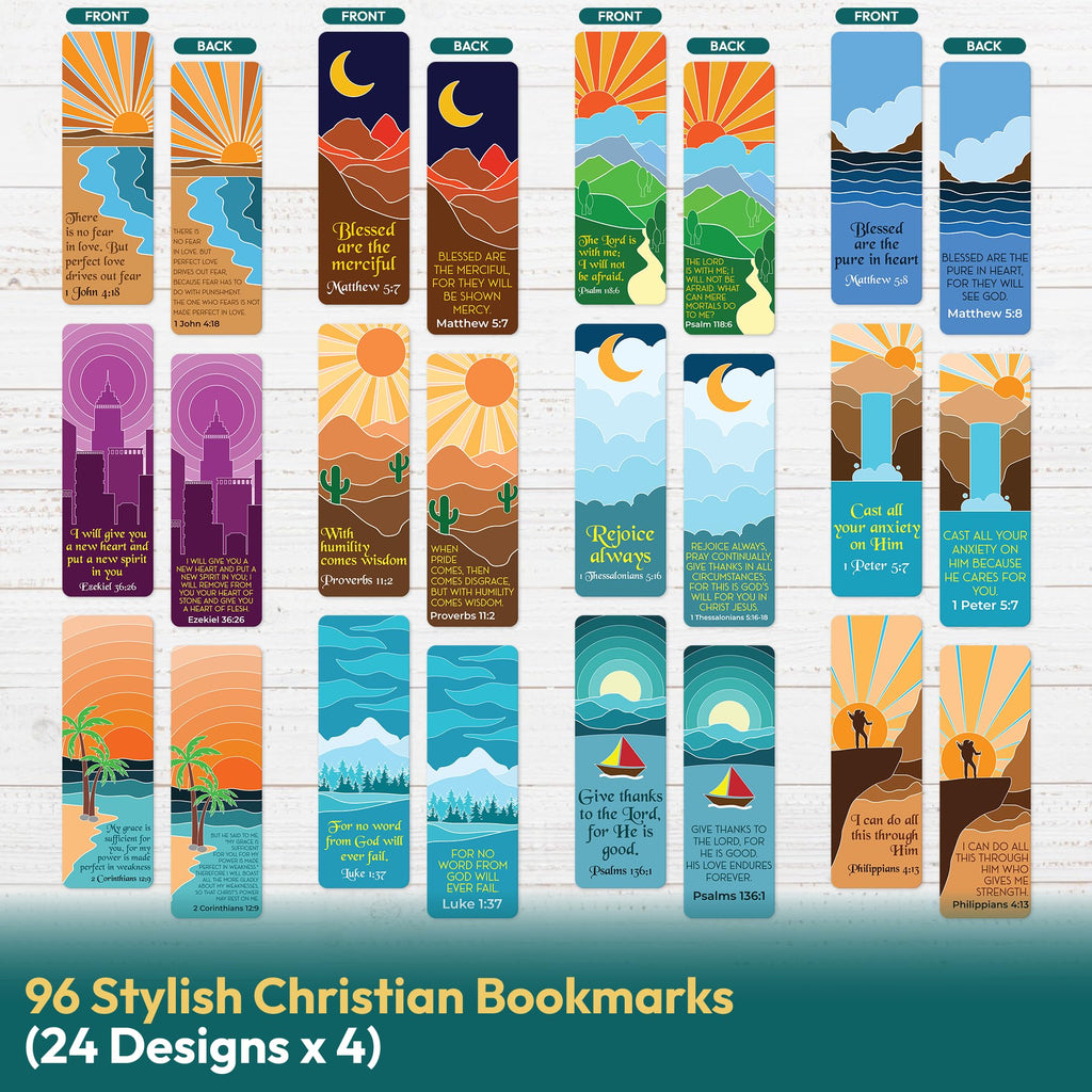 Discover Only Zest's 96-Pack of Bible bookmarks, designed to inspire faith and motivation with every page turn. These Christian bookmarks for women and men feature uplifting scripture, Bible book markers, and spiritual messages from the Holy Bible (KJV)-perfect for church members, pastors, missionaries, and students. Crafted with high-quality materials, these bible page markers are durable and vibrant, ensuring long-lasting use. Ideal for Sunday school prizes, teacher appreciation gifts, Christian gifts for women bulk, and evangelism. These Catholic bookmarks slip easily into any book without causing damage, making them great for church decorations, cursillo palanca, and sanctuary use. Choose from beautiful floral, aesthetic, and watercolor designs, each featuring motivational quotes and Christian book marks for woman about Jesus to uplift and encourage. These biblical book markers are perfect for reading, planners, devotionals, and textbooks, making them ideal for men, women, students, and grandparents. Use these as a bookmark for Bible, psalm 23 bookmark, or Christian book mark. They also make great Easter bookmarks, inspirational bookmarks, and bible bookmarks for kids. These bible bookmarks for women are available in bookmarks bulk, making them perfect as bulk bookmarks for adults, church groups, schools, and book clubs. Give the gift of scripture and inspiration with these Bible verse cards-perfect for prayer, tracts, and bookmarks for men and women who cherish faith-based reading accessories from the Holy Bible (KJV).
