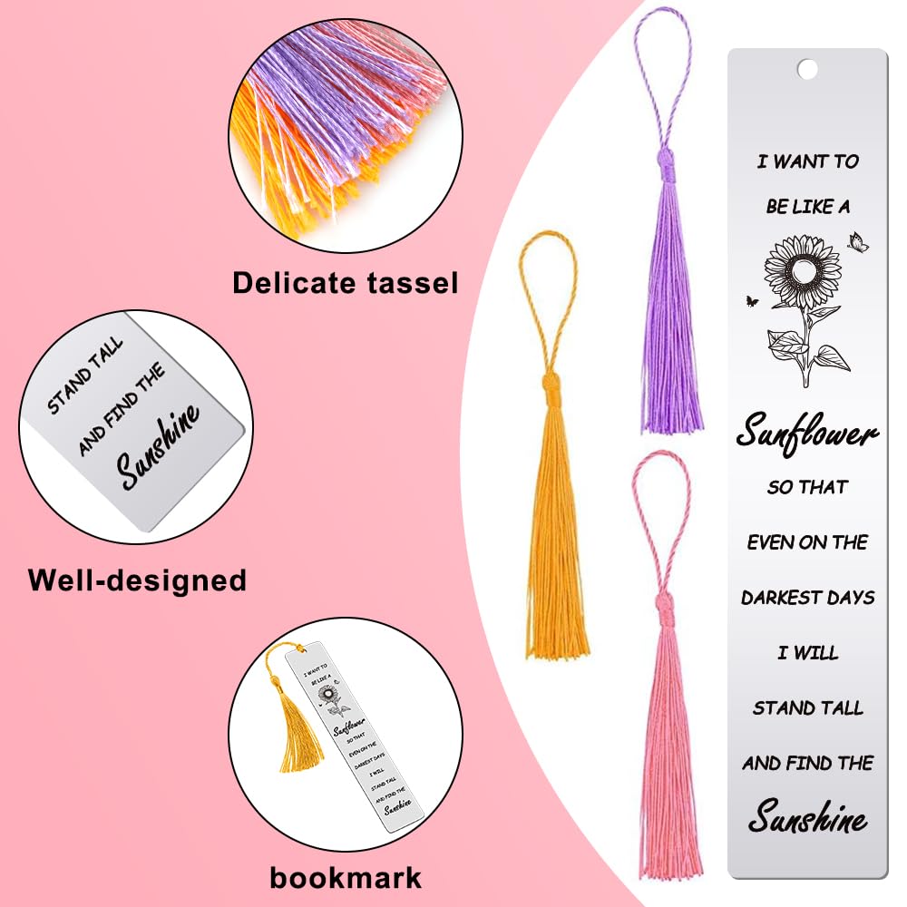 Quimoy Sunflower Gifts for Women Girls, Inspirational Gifts for Women, Sunflower Bookmark with 3 PCS Tassels for Christmas, Birt