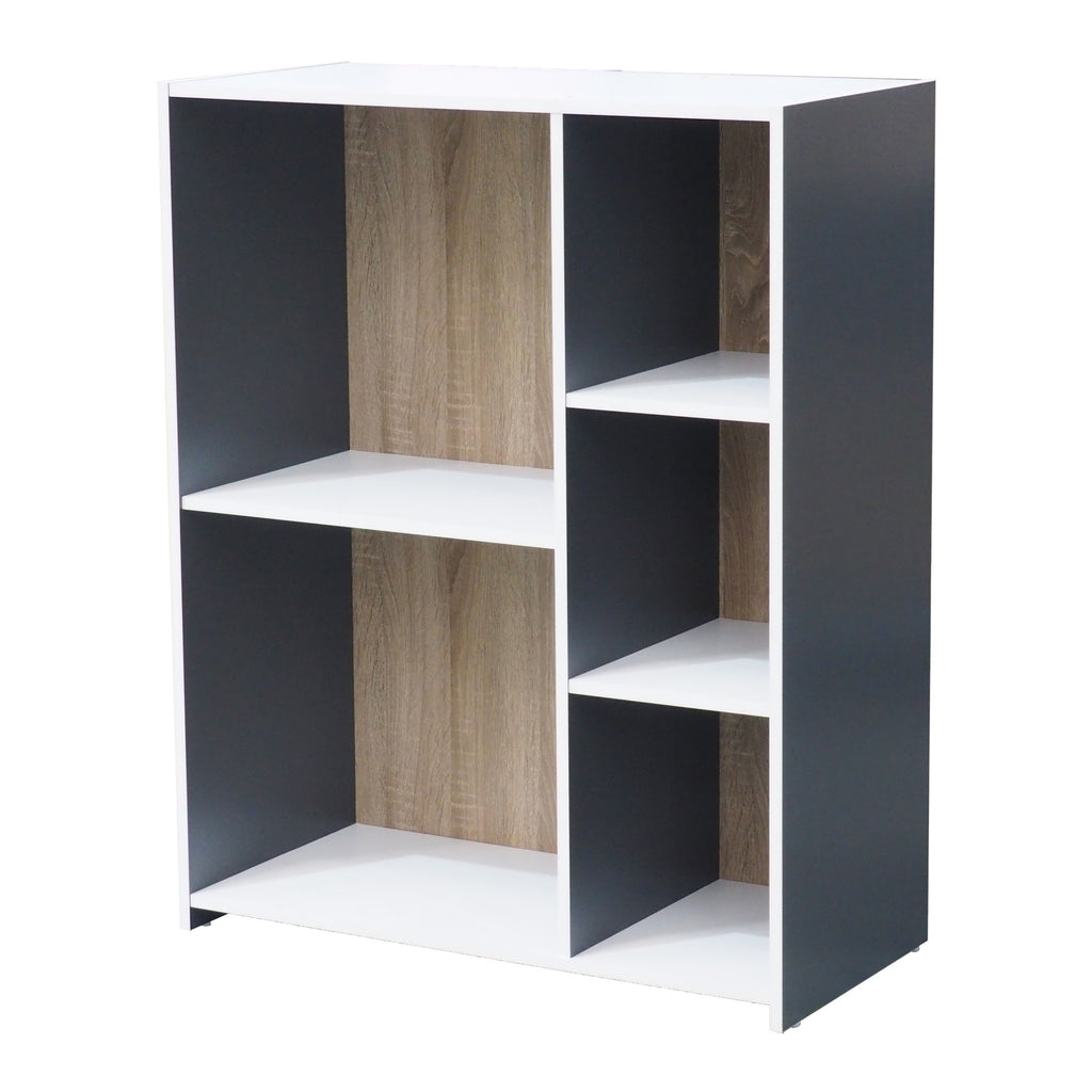 Sorkin Five Open Cube Wooden Bookcase Organizer, Gray, White & Oak. Get Organized Lickety-Split With This Perfectly Sized Sorkin Cube Organizer. The Different Size Cubes Can Be Used To Fit Your Needs. Featuring A Clean-Lined Design In A Solid Hue That'S Versatile Enough To Fit Any Aesthetic.