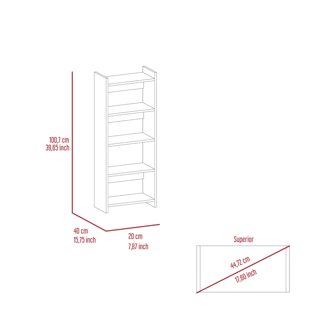 The desk has a top surface of 31.5" W x 15.8" D and offers 23.2" of legroom. The bookcase stands at 39.6" H, with each shelf measuring 8.22" H x 15.3" W.