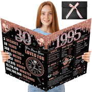 Uiorgui Large 30th Birthday Card for Women with Envelope, Black Rose Gold Happy 30th Birthday Guest Book Gifts Jumbo Thirty Gree