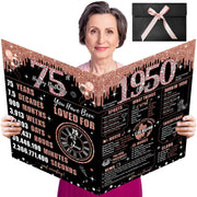 Uiorgui Large 75th Birthday Card for Women with Envelope, Black Rose Gold Happy 75th Birthday Guest Book Gifts Jumbo Seventy Fiv