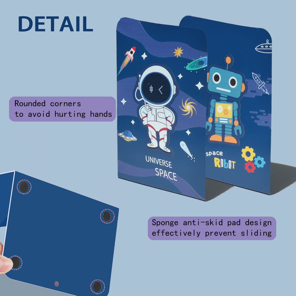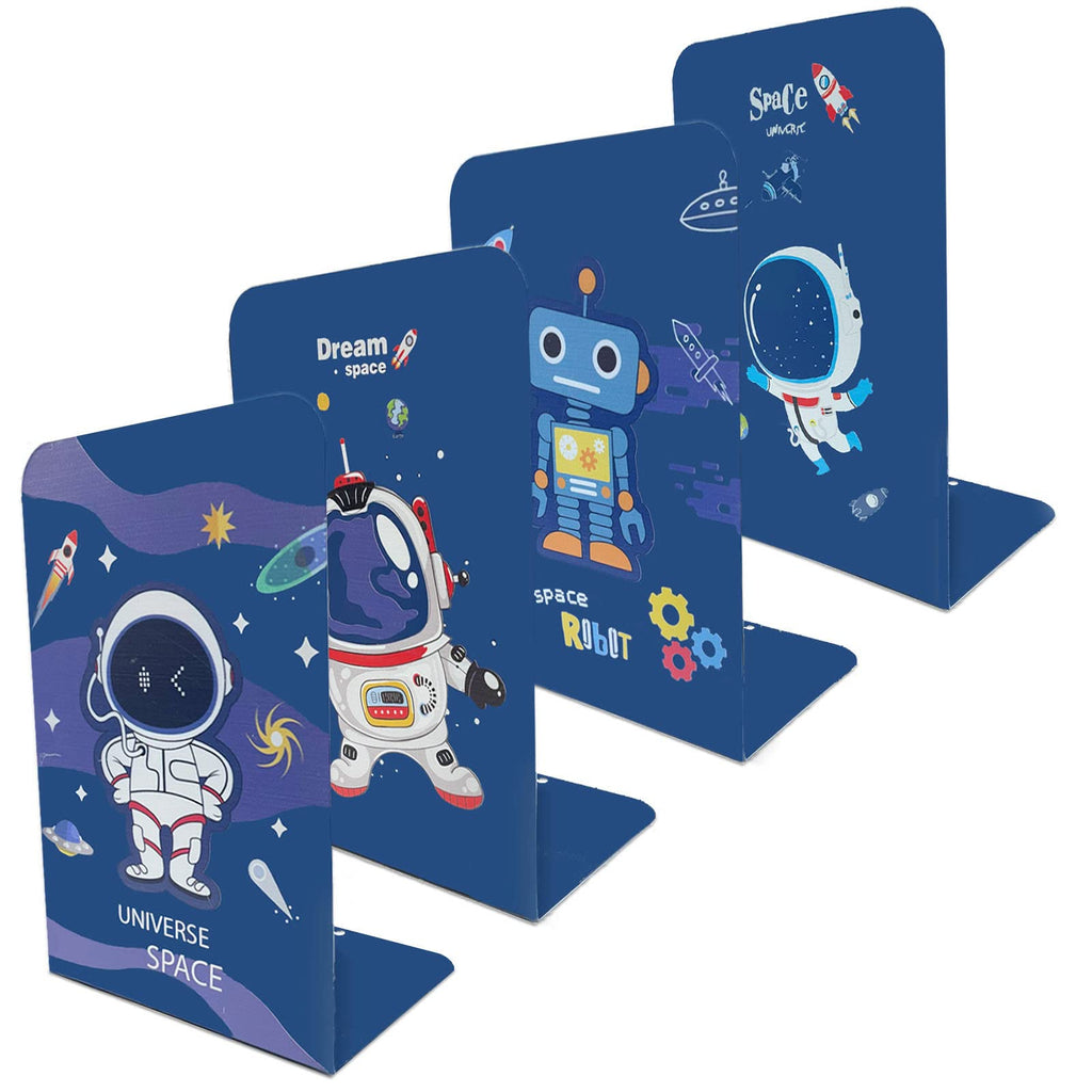 The package you will receive includes 4 pairs/8 pieces metal bookends 4 astronaut shapes Why choose us? 1.Awesome and cute gift,we can give it to friends, family or classmates to organize books, CDs, DVDs, magazines and use it in multiple places, home, school, office, library, etc. 2.4 Different unicorn patterns can meet the needs of every child. 3.Perfect after-sales service, when you receive the product, if you have any questions, if you are willing to contact us,we are very willing to help you solve it. What are you waiting for?Take it home quickly! NOTE: If you meet any problems, please contact us immediately and we will help you. If you receive the wrong quantity, please contact us immediately, we will give this product to you, and resend a new one to you