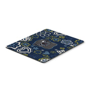 Blue Flowers Black Pug Mouse Pad, Hot Pad Or Trivet