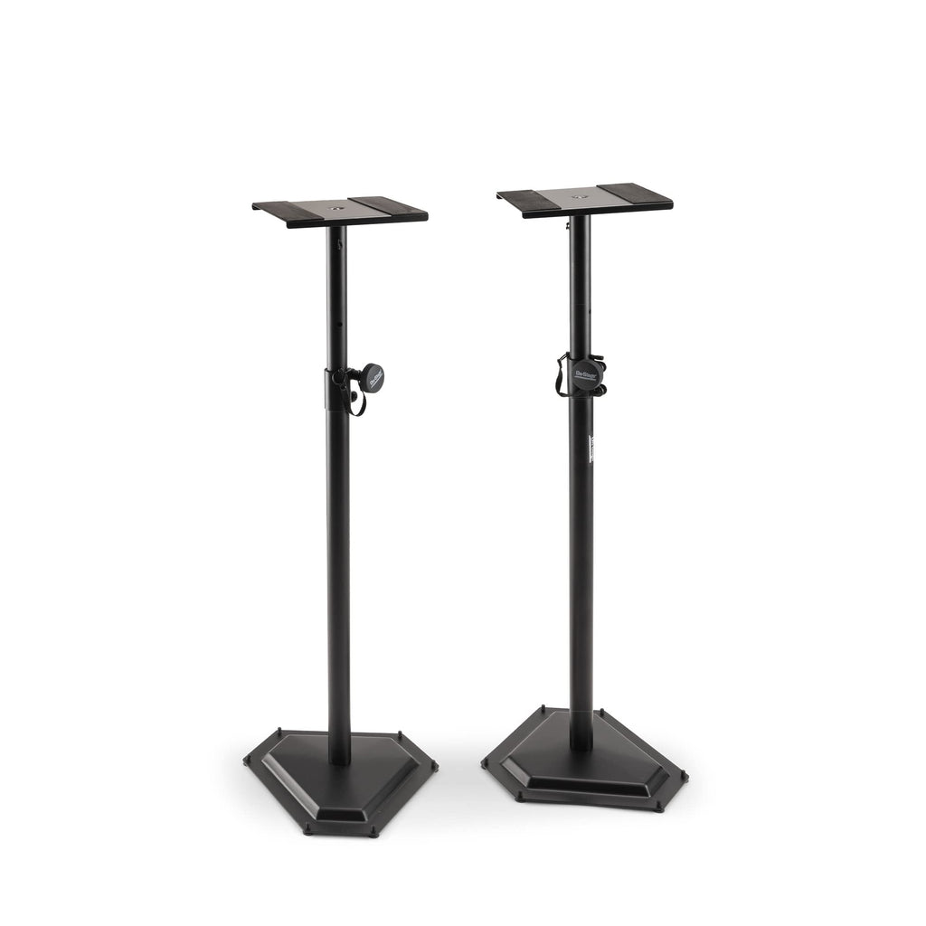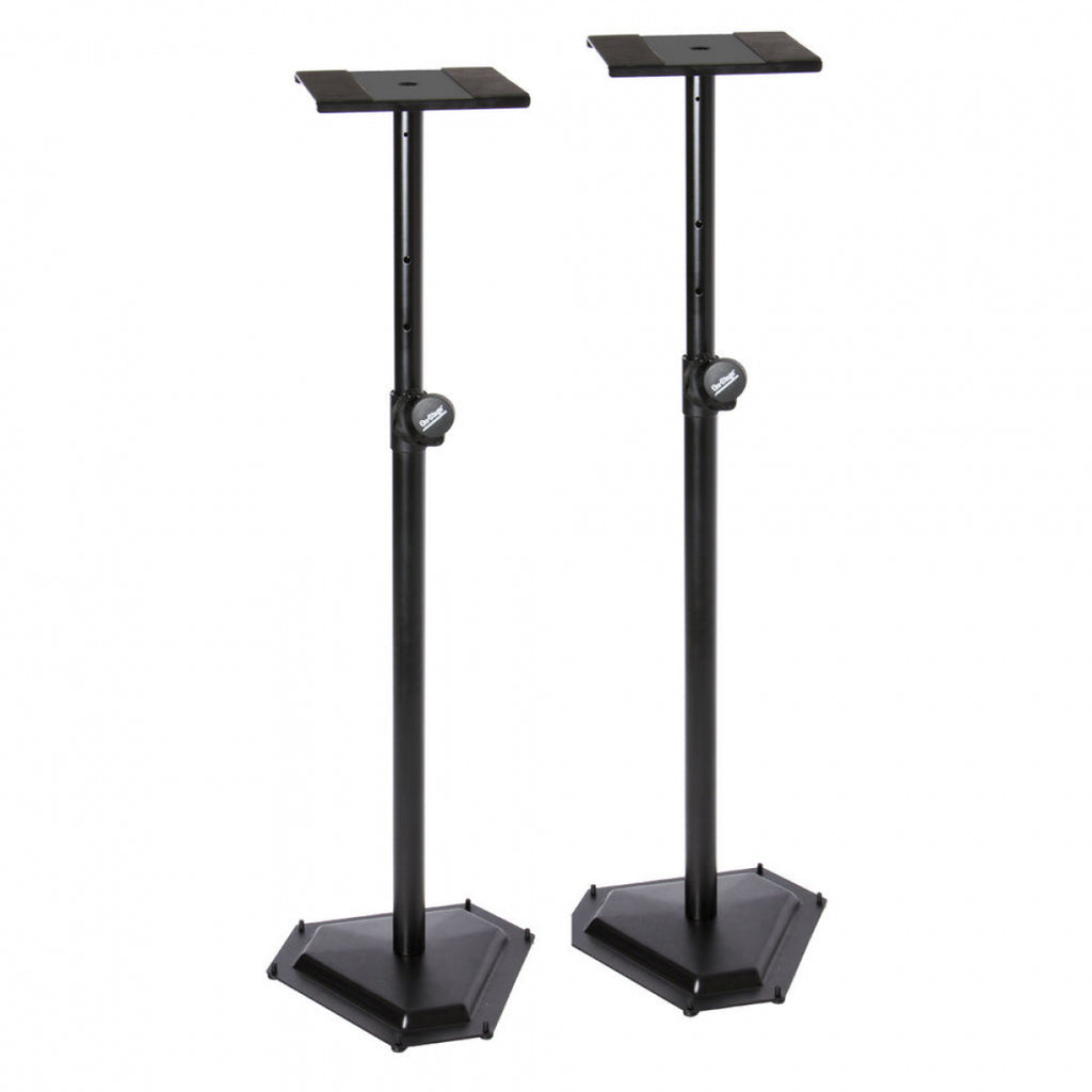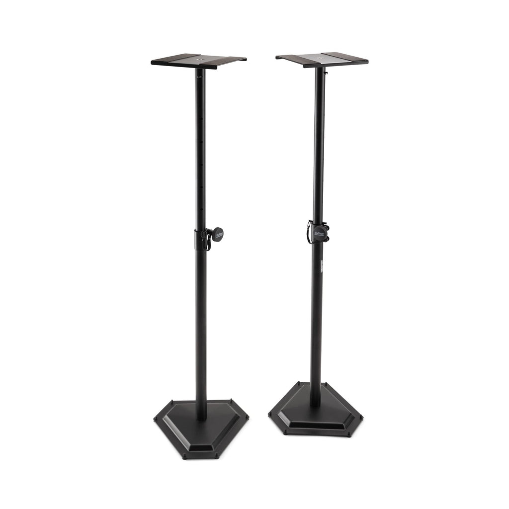 Professional Studio Monitor Stands Adjust From 36.5-54'' In Height To Customize Your Listening Area. The Stands Feature A Heavy Duty Stamped Hex-Base, Which Provides A Stable Foundation And Can Hold Up To 90 Lbs Per Stand. Rubber Feet And Eva Rubber On The Platform Add Stability And Shock Absorption. Six Leveling Carpet Spikes Can Be Installed For Extra Stability When Using The Stand On Carpet.
