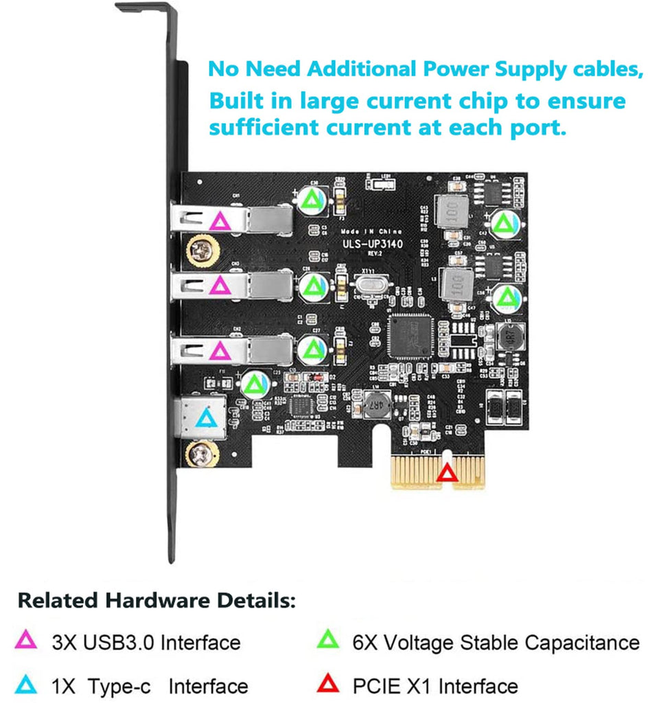 Yeeliya PCIe USB Card 4-Ports(1x USB-C - 3X USB-A) USB 3.0 Expansion Card PC Internal USB hub for Windows 10/8/7 and MacPro 4.1/