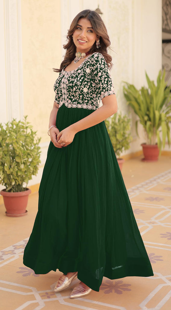 Fashion Basket Georgette Embroidered Anarkali Gown For Women Green Green Xl
