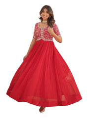 Fashion Basket Georgette Embroidered Anarkali Gown For Women Red L