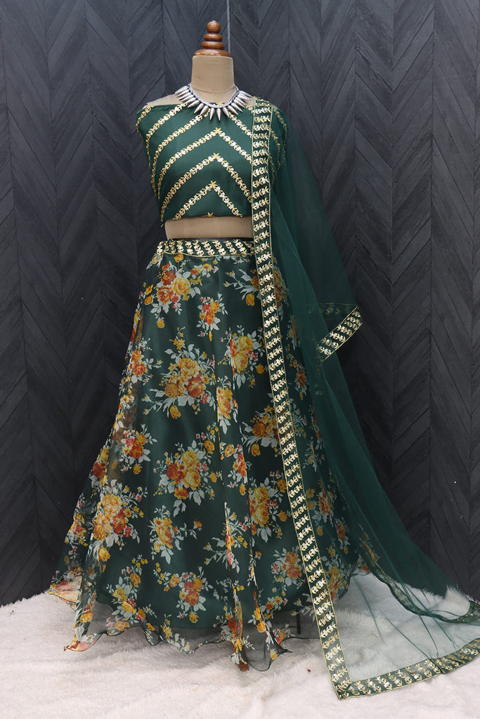 Fashion Basket Women'S Floral Organza Semi Stitched Green Lehenga Choli Green Free Size Fb-Lh-L8097-Green