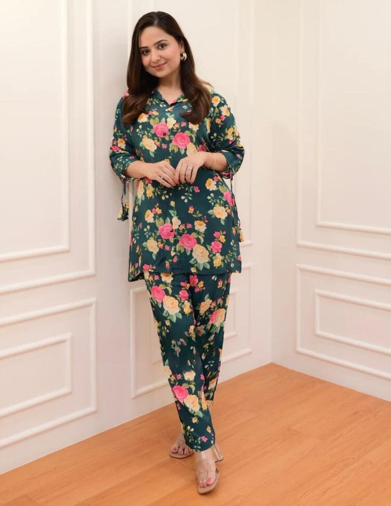 Leriya Fashion Ethnic Co Ord Set For Women Kurta Set For Women | 2 Piece Kurta Set | Kurta With Pant For Women | Co-Ord Set (X-Large, Green)