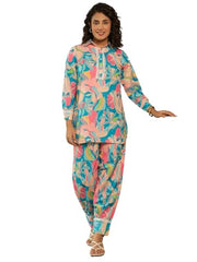 Leriya Fashion Women'S Rayon Printed Regular Kurta Set (Lf-W2149&Tr1116_Blue_Xl)