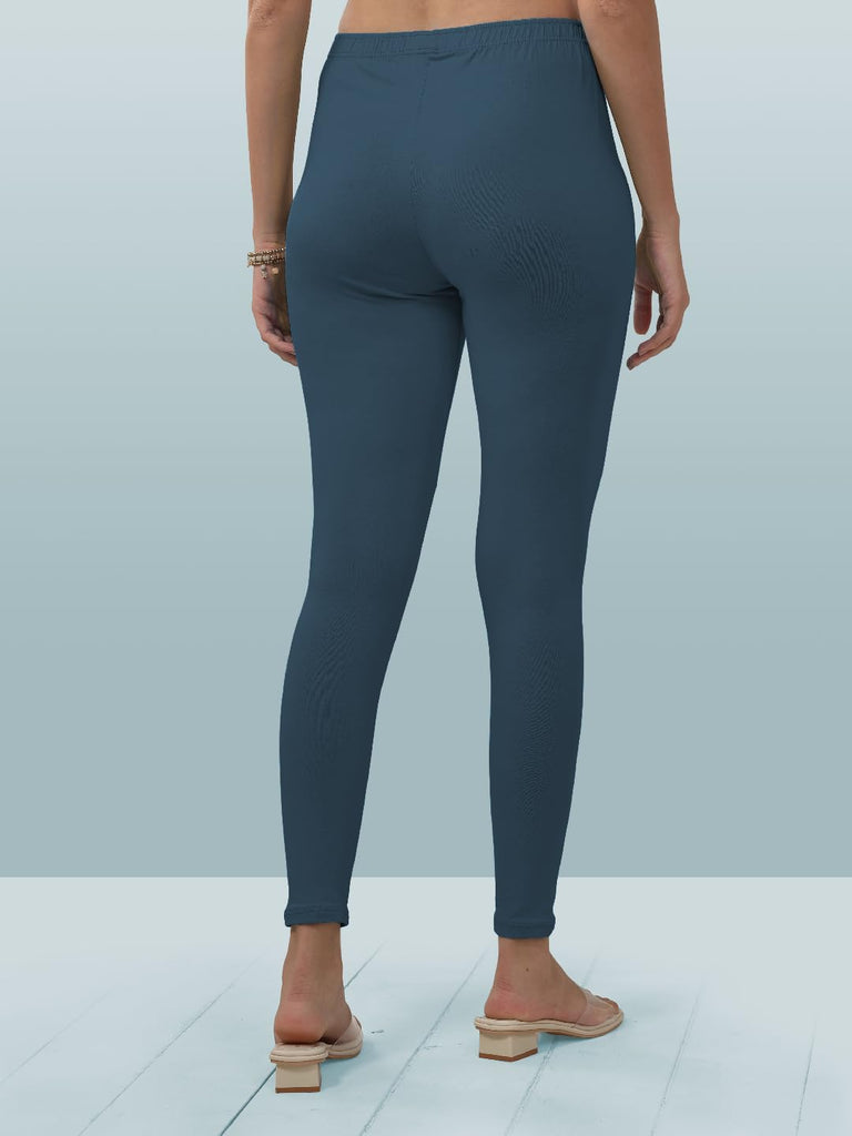 Lyra Women Solid Premium Cotton Ankle Length Leggings | Mid-Waist | Fashionwear Denim Blue L