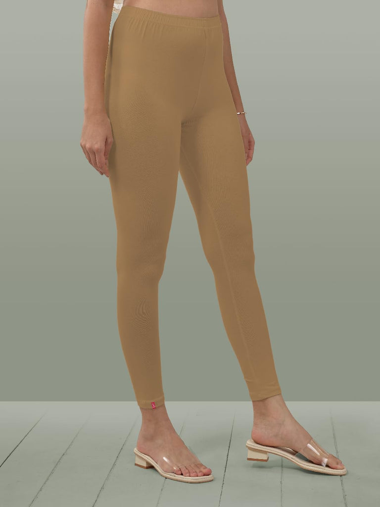 Lyra Women Solid Premium Cotton Ankle Length Leggings | Mid-Waist | Fashionwear Peanut Brown L