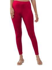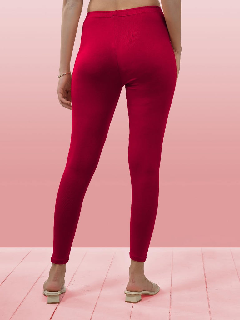 Lyra Women Solid Premium Cotton Ankle Length Leggings | Mid-Waist | Fashionwear Pink L