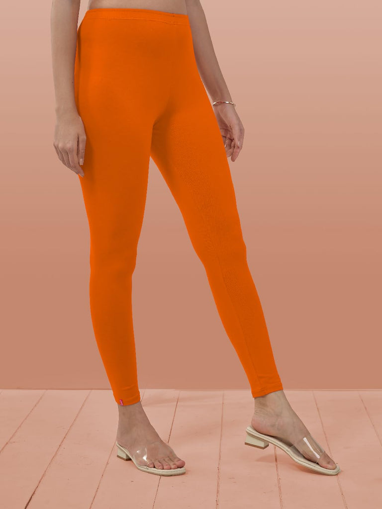 Lyra Women Solid Premium Cotton Ankle Length Leggings | Mid-Waist | Fashionwear Saffron