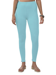 Lyra Women Solid Premium Cotton Ankle Length Leggings | Mid-Waist | Fashionwear Sky Blue L