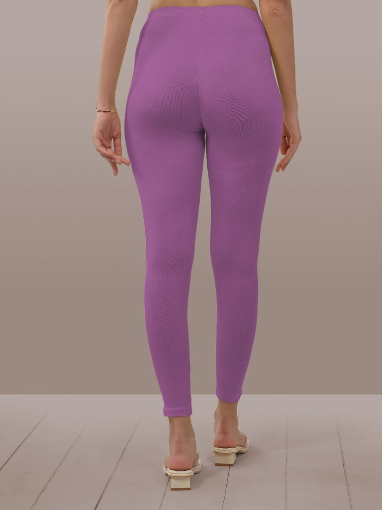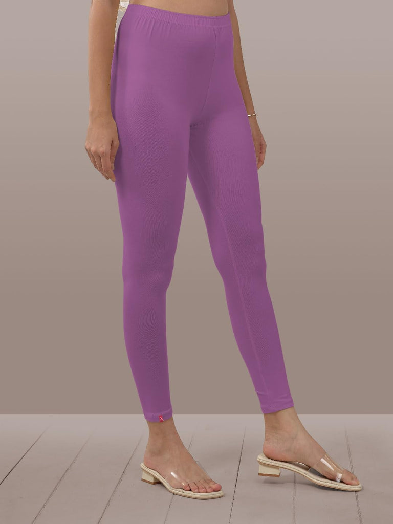 Lyra Women Solid Premium Cotton Lavender Ankle Length Leggings | Mid-Waist | Fashionwear