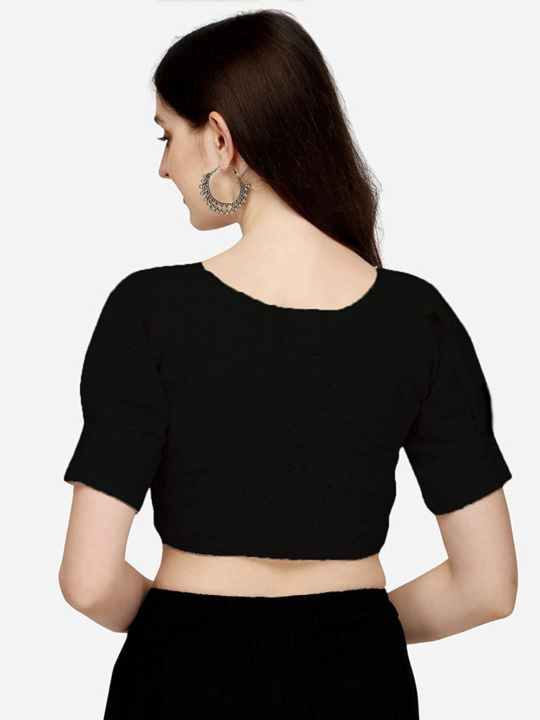 Vihu Fashion Women'S Cotton Chikankari Embroidery Work Readymade Saree Blouse (38, Black)