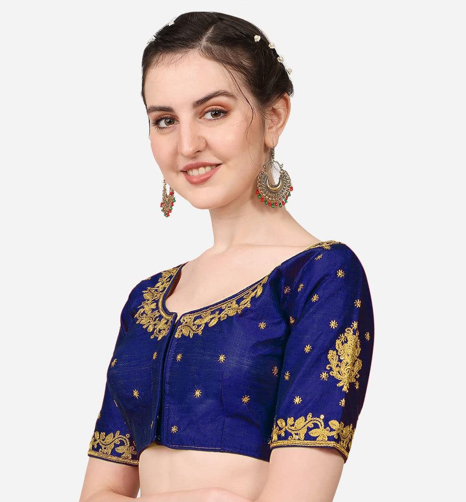 Vihu Fashion Women'S Multicolour Phantom Silk Heavy Embroidery Half Sleeve Readymade Saree Blouse For Lehenga Choli (Navy Blue,