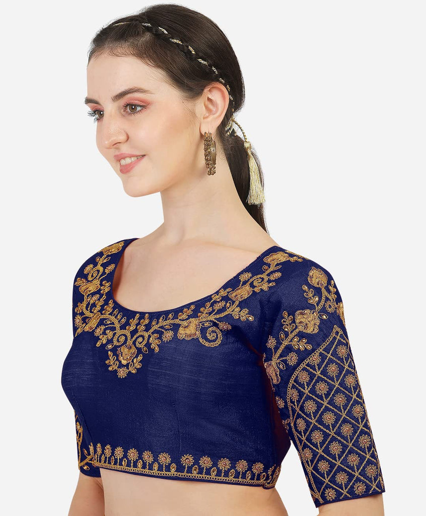 Vihu Fashion Women'S Phantom Silk Multicolour Floral Design Hand Embroidery Gold Thread And Stone Work Readymade Blouse For Sare
