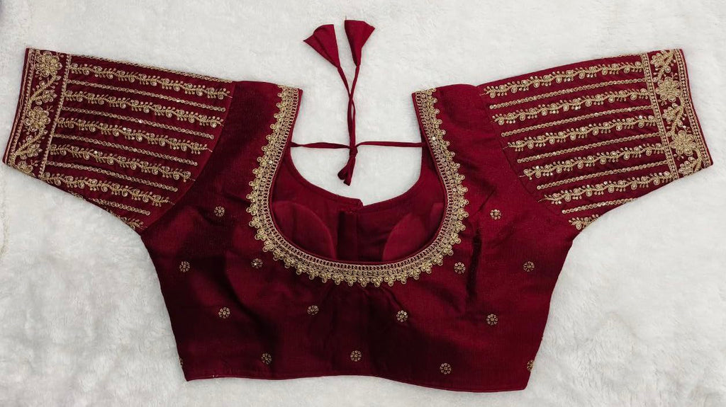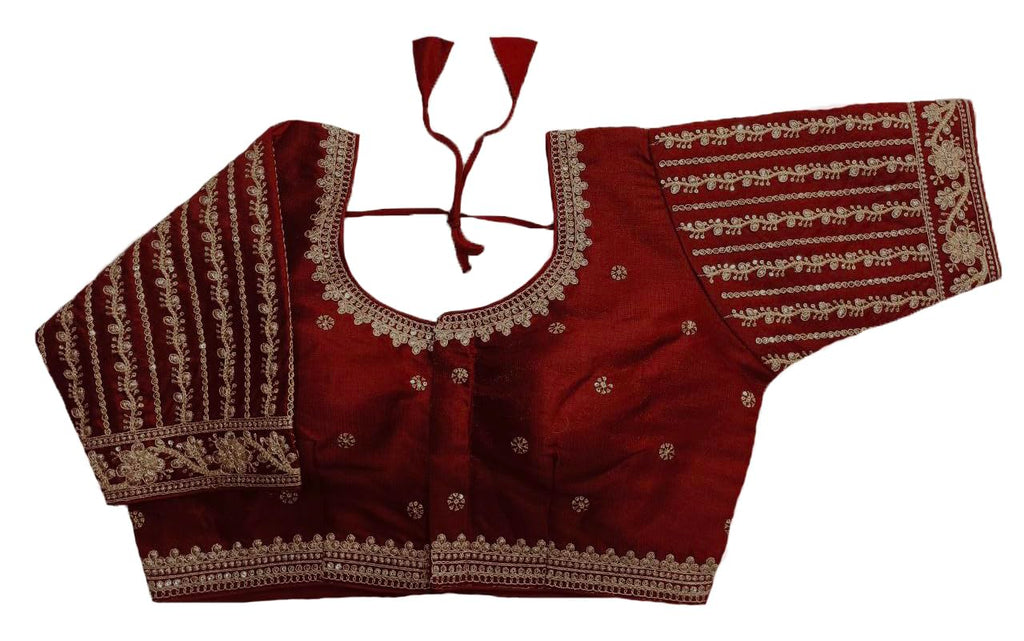 DescriptionIntroducing our latest addition to the ethnic wardrobe - the Women's Rani Pink Sequin Embroidered V Neck Half Sleeve Readymade Saree Blouse. Enhance your saree ensemble with this chic blouse featuring a flattering V-neck and comfortable half sleeves adorned with intricate sequin embroidery. The perfect fit is ensured with padded cups, and the back features a convenient hook and eye closure for easy wear. Additionally, enjoy the luxury of Butter Crepe lining for added comfort. Key Features: Elegant V Neck Design Half Sleeves with Sequin Embroidery Padded Cups for Comfort Hook and Eye Closure for Easy Wearing Luxurious Butter Crepe Lining Benefits: Elevate your saree look with sophistication Sequin embroidery adds a charming touch Padded cups ensure a flattering fit Convenient hook and eye closure at the back Butter Crepe lining for added comfort Usage: Pair this Rani Pink Sequin Embroidered V Neck Half Sleeve Readymade Saree Blouse effortlessly with your sarees. Whether it's a casual gathering or a festive celebration, this blouse promises to make you stand out with its unique design and luxurious lining. Quality Assurance: At PUJIA MILLS, customer satisfaction is our top priority. The Rani Pink Sequin Embroidered V Neck Half Sleeve Readymade Saree Blouse is meticulously crafted using premium materials and expert workmanship. Rest assured that our commitment to quality ensures you receive a product of the highest standards in durability and aesthetics. Join the Vihu Fashion family and experience our dedication to inclusivity, affordability, and body positivity. We aim to empower women, fostering confidence and celebrating the unique beauty in each individual. Make a stylish statement on any festive occasion with our Rani Pink Sequin Embroidered V Neck Half Sleeve Readymade Saree Blouse featuring Butter Crepe Lining