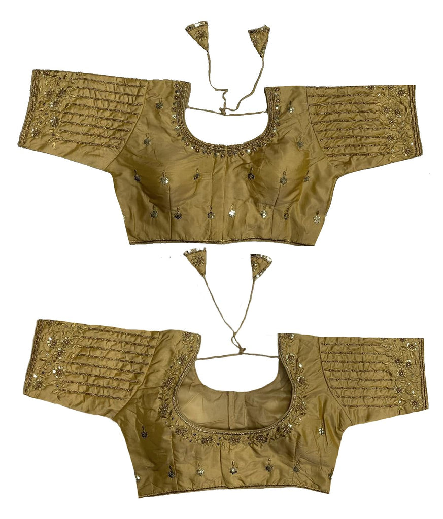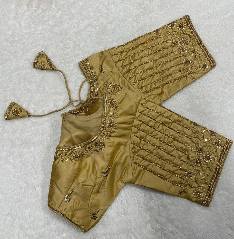 Vihu Fashion Women'S Readymade Bridal Embroidery Blouse Multi Coding Maggam Work Moti Work Indian Ethnic Designer Stitched Readymade Saree Half Sleeve Gold Blouse For Women For Saree Lehenga Choli Gold 36