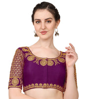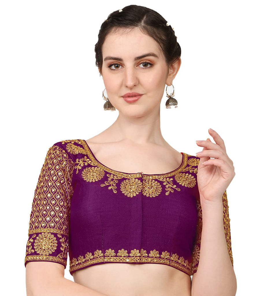 Vihu Fashion Women'S Silk Floral Half Sleeve Blouse (Mayur Pankh_Violet_38)