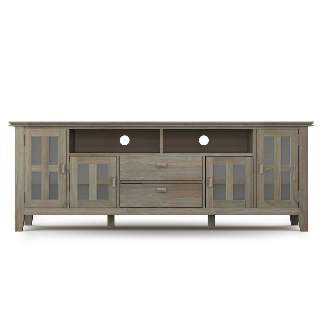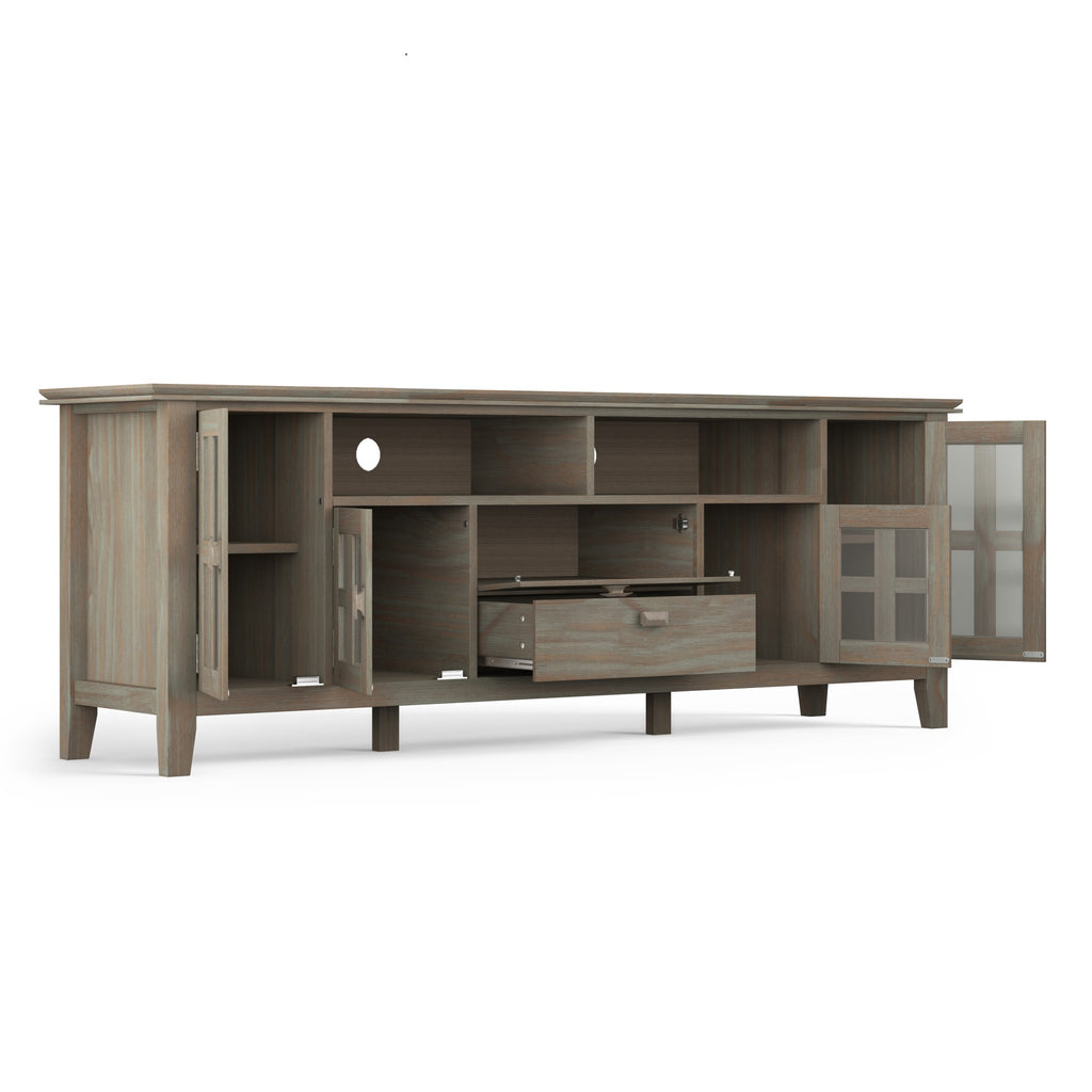 Artisan Solid Wood 72 Inch Wide Transitional Tv Media Stand In Distressed Grey For Tvs Up To 80 Inches