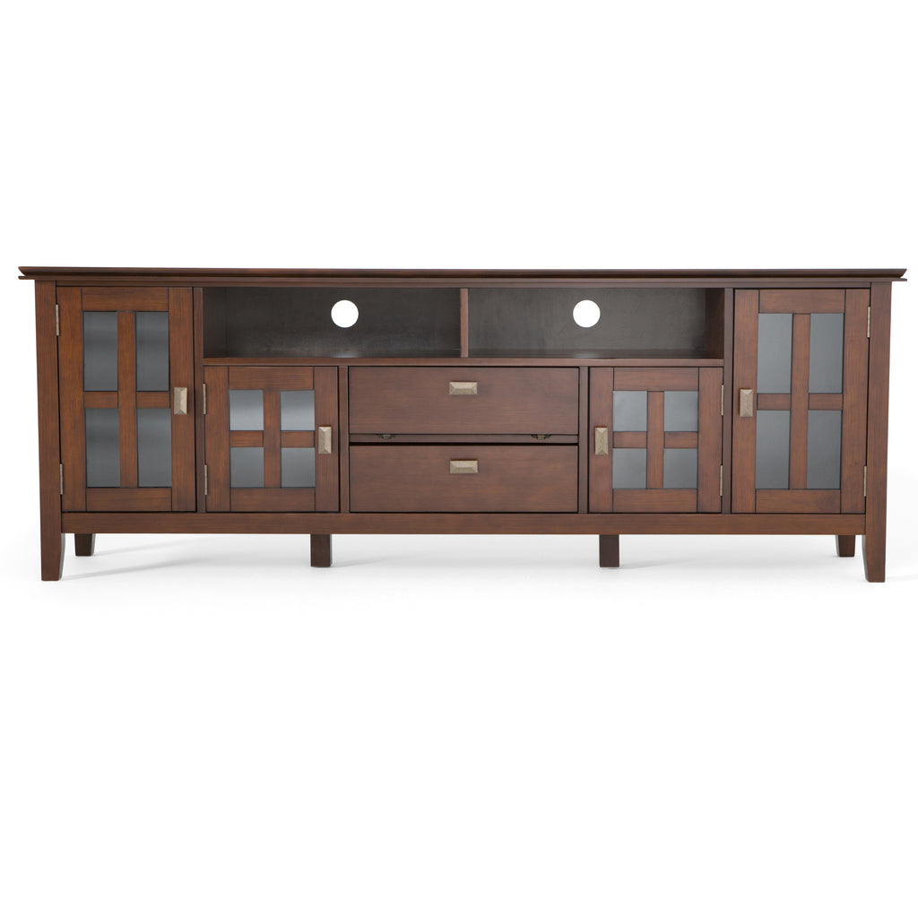 Artisan Solid Wood 72 Inch Wide Transitional Tv Media Stand In Russet Brown For Tvs Up To 80 Inches