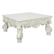 Give Your Seating Arrangements A Sense Of Class With This Gorgeously Opulent Coffee Table, Made From Durable Composite Wood In A Crisp White Finish With Antique Detailing For A Vintage And Elegant Aesthetic. It Has A Wide, Sturdy, Square Molded Top Resting On Ornate Scrolled Legs. Check Out Our Ataa Collection For Matching Pieces.