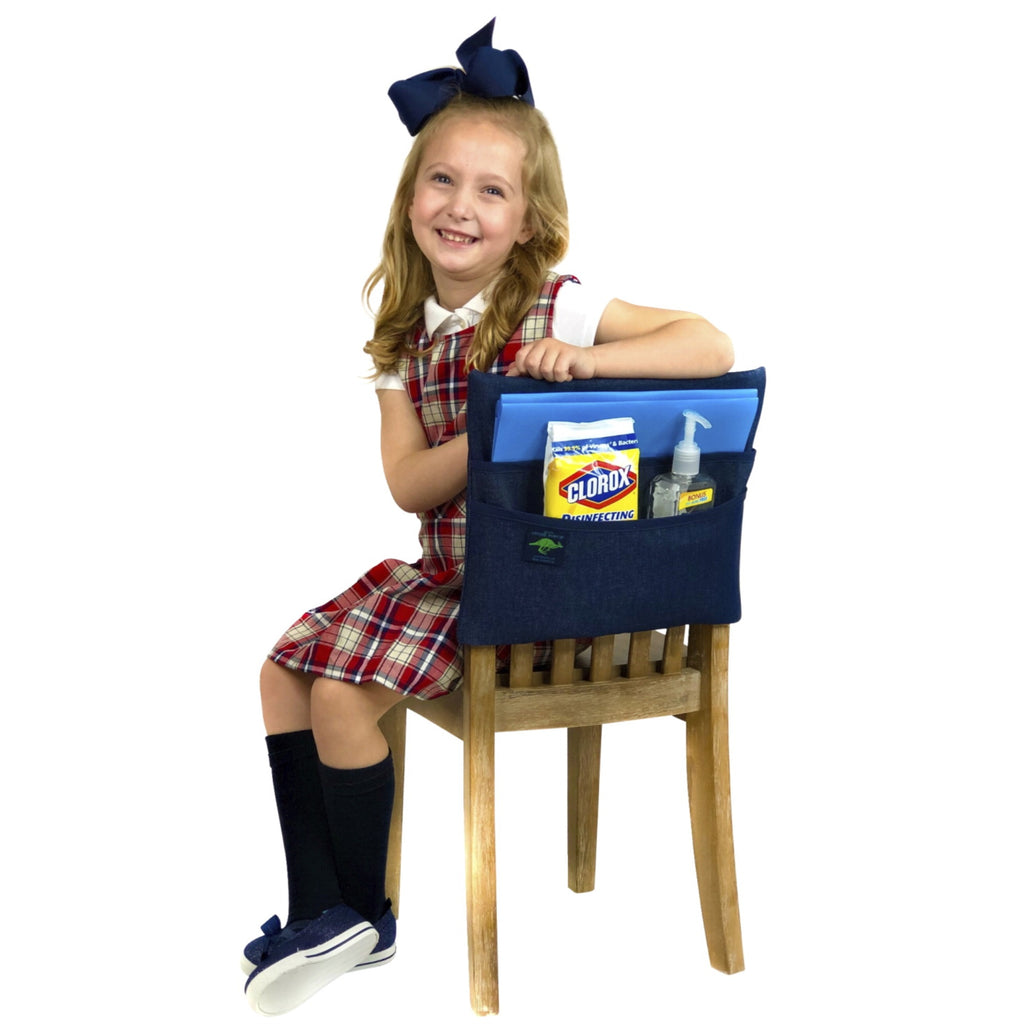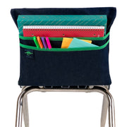 Say Goodbye To Overstuffed Desk Drawers And Covered Desktops! Aussie Pouch School Chair Pockets Take The Load Off By Neatly Compiling Classroom Supplies Right At The Back Of Childrens Seats. These Premier Quality Pockets Are Manufactured With Heavy Weight Denim That Is Machine Washable And Lasts Up To 10 Years! Two Large Pockets (With Solid Green Trim) Hold A Variety Of School Supplies, Notebooks, Books, And Smaller Essentials Like Tape, Rulers, Pens, And Beyond. Extra-Large Sized Pouch Pocket (At 19 Inches) Fits Chairs With A Backrest With Top Measuring 16 To 18 Inches Wide And A Bottom Measuring 16 To 18 Inches Wide. The Denim Wash May Have A Slightly Blackish Undertone (Hues May Have Variations) To Lend An Authentic Touch.